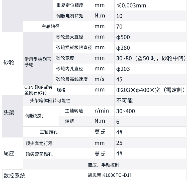 本机床具有砂轮架自动进给,粗、精磨削、工作台自动跳档、工件转速自动切换、自动修整砂轮及修整后自动补偿及循环动作安全联锁等多种功能。